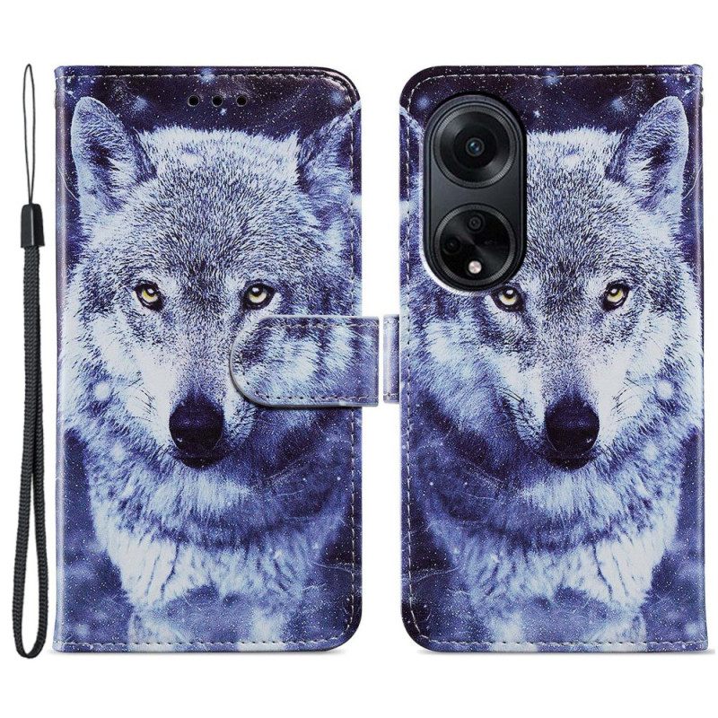 Δερματινη Θηκη Oppo A98 5g Λευκός Λύκος Με Λουράκι